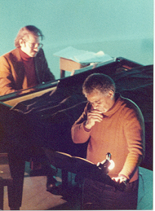 The Family Manone-act, one-character opera by Leonard Lehrman after short story of the same name by Mikhail Sholokhov (1905-1984) previewed by Ronald Edwards at TOMI and Stern College, Jan. 8 & 11, 1984 concert premiere (in German) by George Shirley (featured in photos)--> at Künstlerhaus Bethanien, Berlin Jan. 6, 1985 co-sponsored by Amerikahaus, Berlin staged with Ronald Edwards by Lou Rodgers for Golden Fleece Ltd., Manhattan, June 27-30, 1985 video of staged performance shown complete at Union of Composers during Moscow Youth Festival, July, 1985 performed again by Ronald Edwards in concert at Kleine Szene, Sächsische Staatsoper, Dresden in new German translation by Peter Zacher, July 2, 1996 and at NYU (in English) Sept. 27, 1999. In 1985 Backstage dubbed the work "a masterpiece." In reviews of the NYU performance, Jeff Dick called the work "powerful, graphic, and effective in its portrayal of the horrors of war," while Lucas Marquardt wrote: "Lehrman's piano accompaniment was like an orchestra of sounds. There were bangs, and zings, and 'banshees;' dynamically critical to the piece as a whole." Said accompaniment is also performable by 12 players. Photos from Berlin, 1985-- dir.: Joaquin LaHabana, cond.: Leonard Lehrman. Watch a performance by Ronald Edwards, accompanied at the piano by the composer, staged by Lou Rodgers for Golden Fleece, Ltd., June 1985 complete, or in segments: Part 1 Part 2 Part 3 Part 4 |